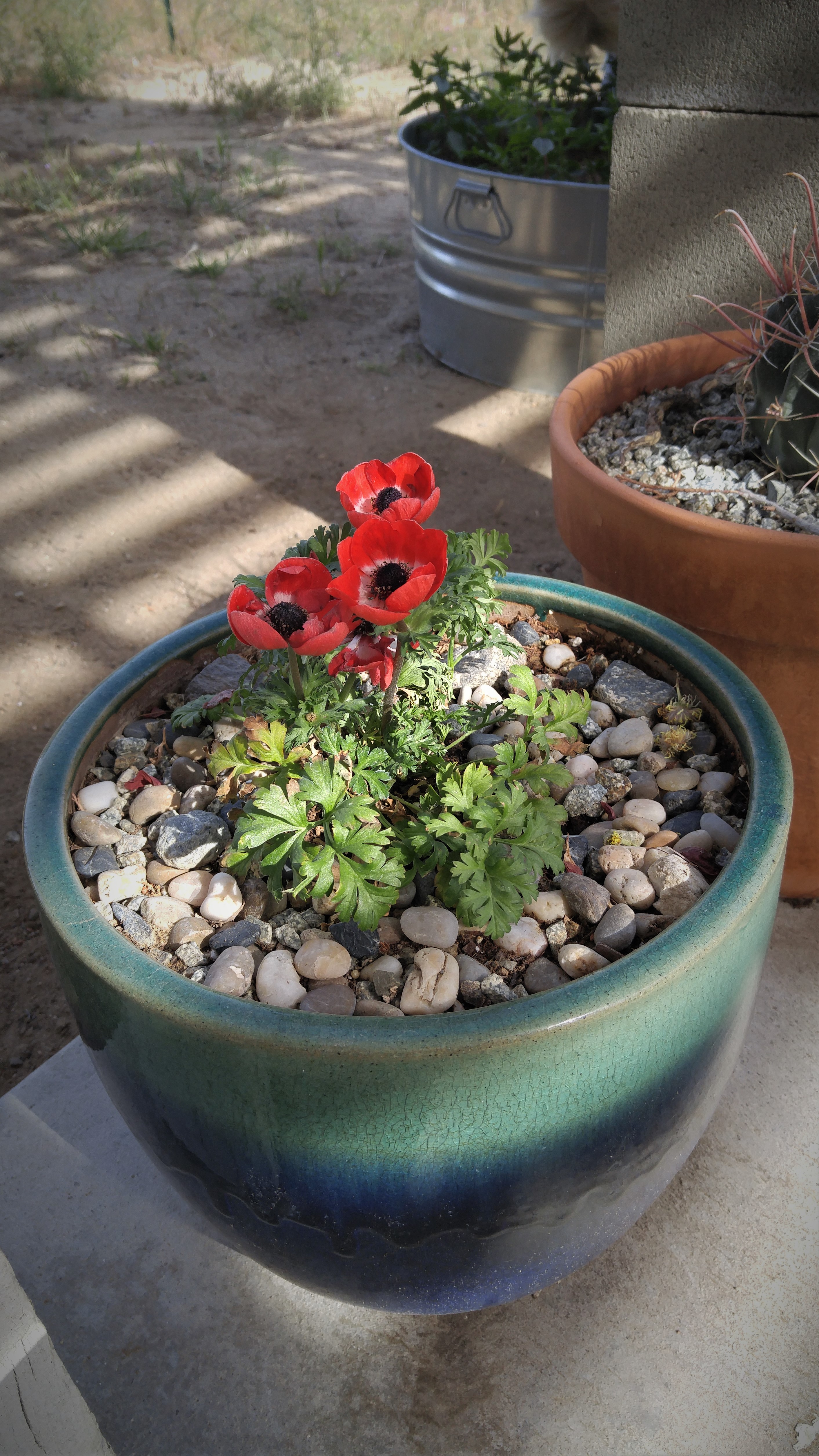 My flowers are starting to bloom, including my daughter’s rose bush and her brand new anemone. Red is her favorite color and she just fell in love at the garden center. She received 2 watering cans and a pair of bright red wellies for her birthday so she’s been ‘helping’ me outside.